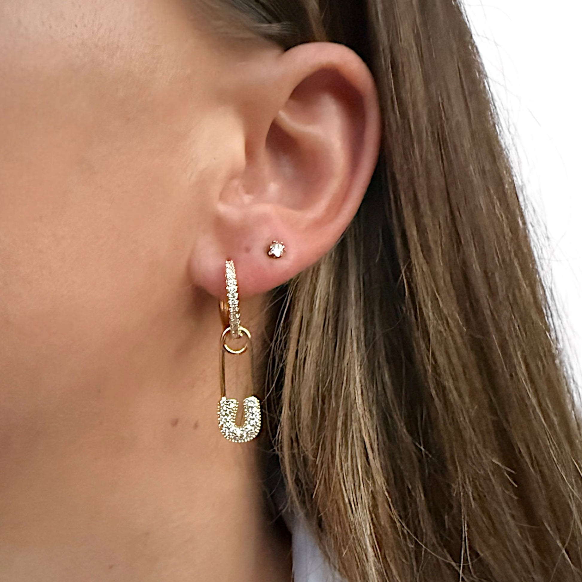 De Faya oorbellen geven een edgy twist aan klassieke glamour. Het unieke veiligheidsspeld-ontwerp is volledig bezet met fonkelende zirkonia steentjes, waardoor ze tegelijk speels en luxe aanvoelen. Perfect voor wie houdt van sieraden die een statement maken en een vleugje rebellie combineren met verfijning.