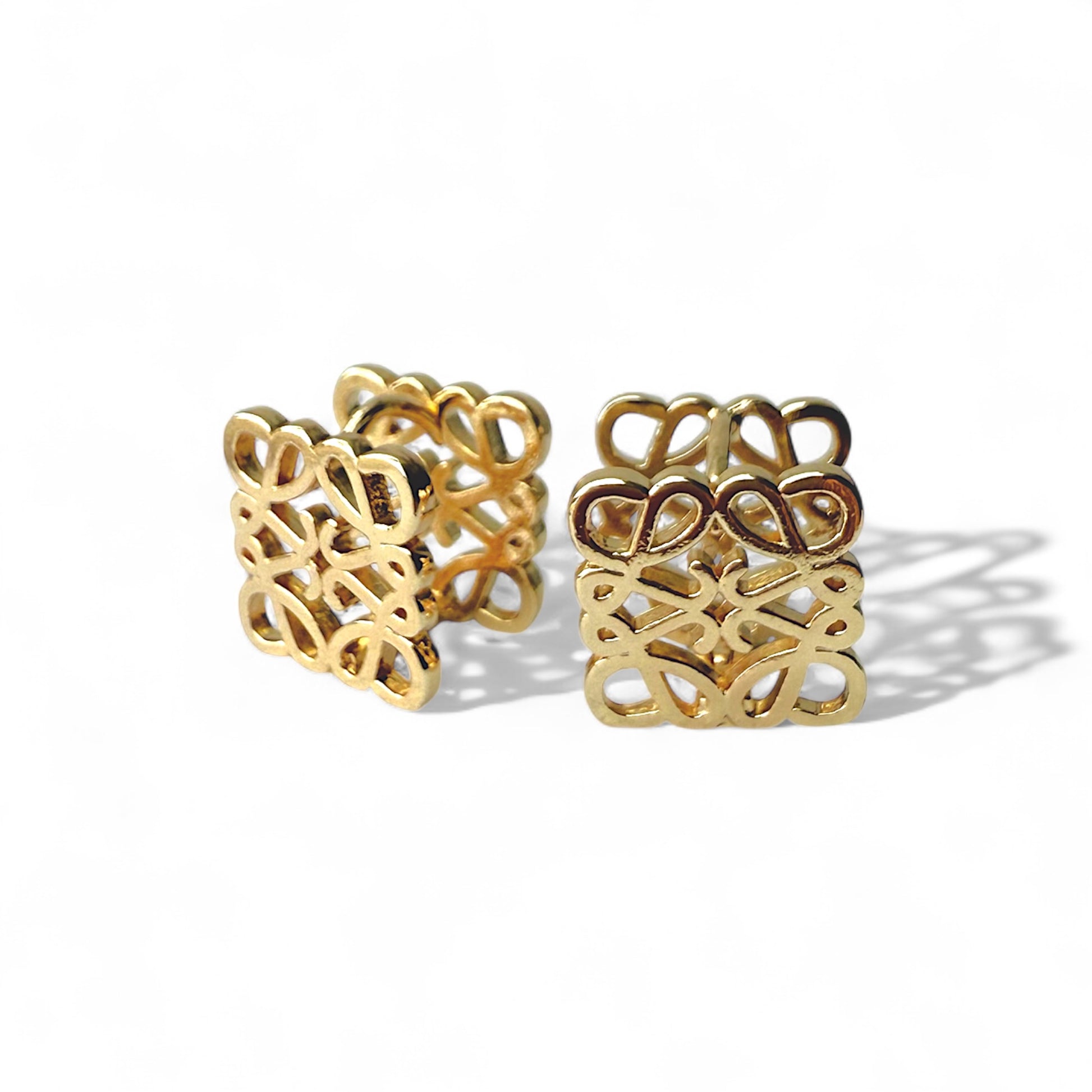 De Louisa oorbellen combineren een verfijnd opengewerkt design met een luxueuze gouden glans. Het speelse, sierlijke patroon doet denken aan kantwerk, maar dan in een moderne, geometrische vorm. Deze statement oorstekers voegen moeiteloos een vleugje elegantie toe aan zowel een casual look als een chique avondoutfit.