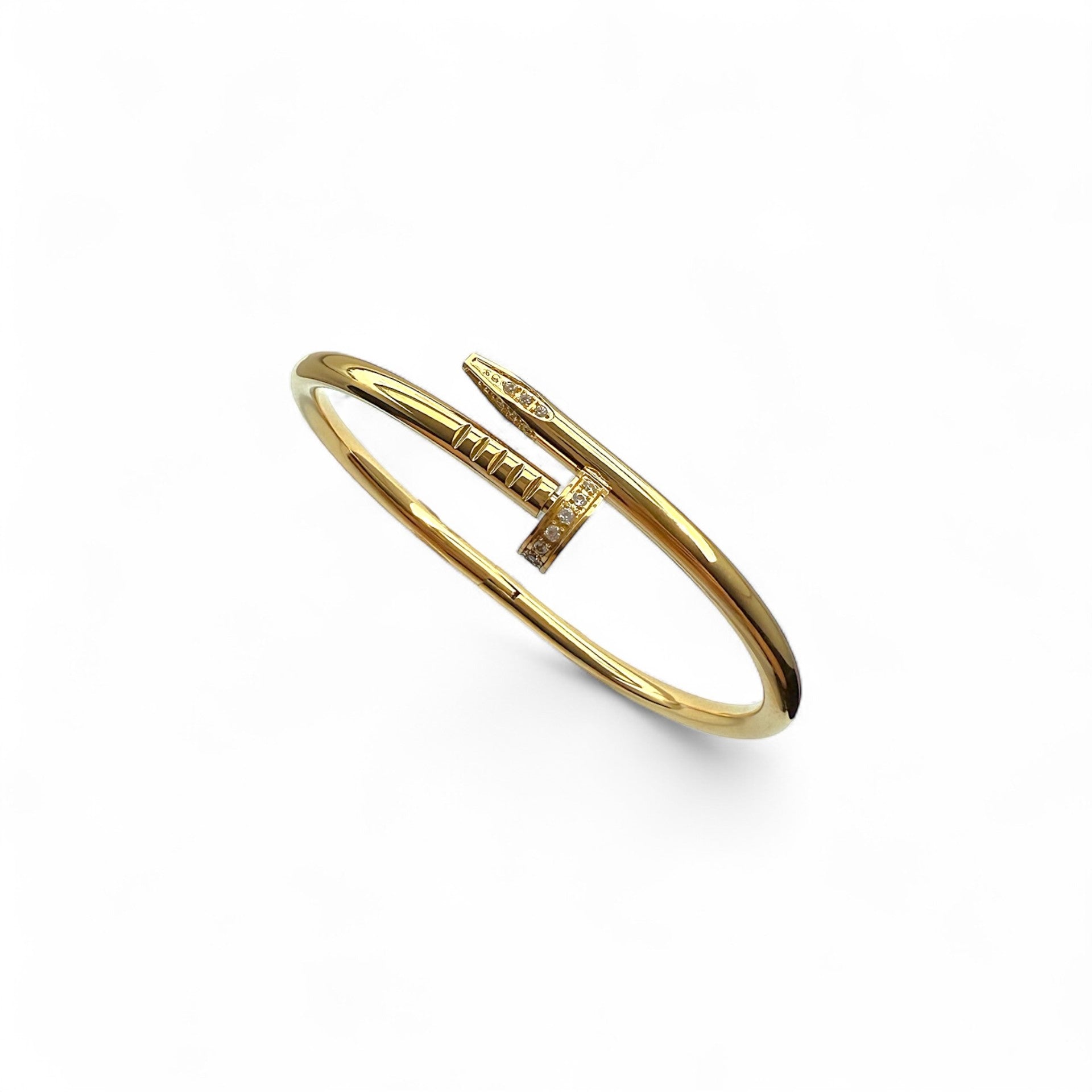 De spijker armband is een krachtig statement piece met een luxueuze twist. Het gestroomlijnde ontwerp, geïnspireerd op een gestileerde spijker, wordt verfraaid door fonkelende zirkonia die het industriële karakter een verfijnde glans geven. Een perfecte balans tussen modern design en tijdloze allure.